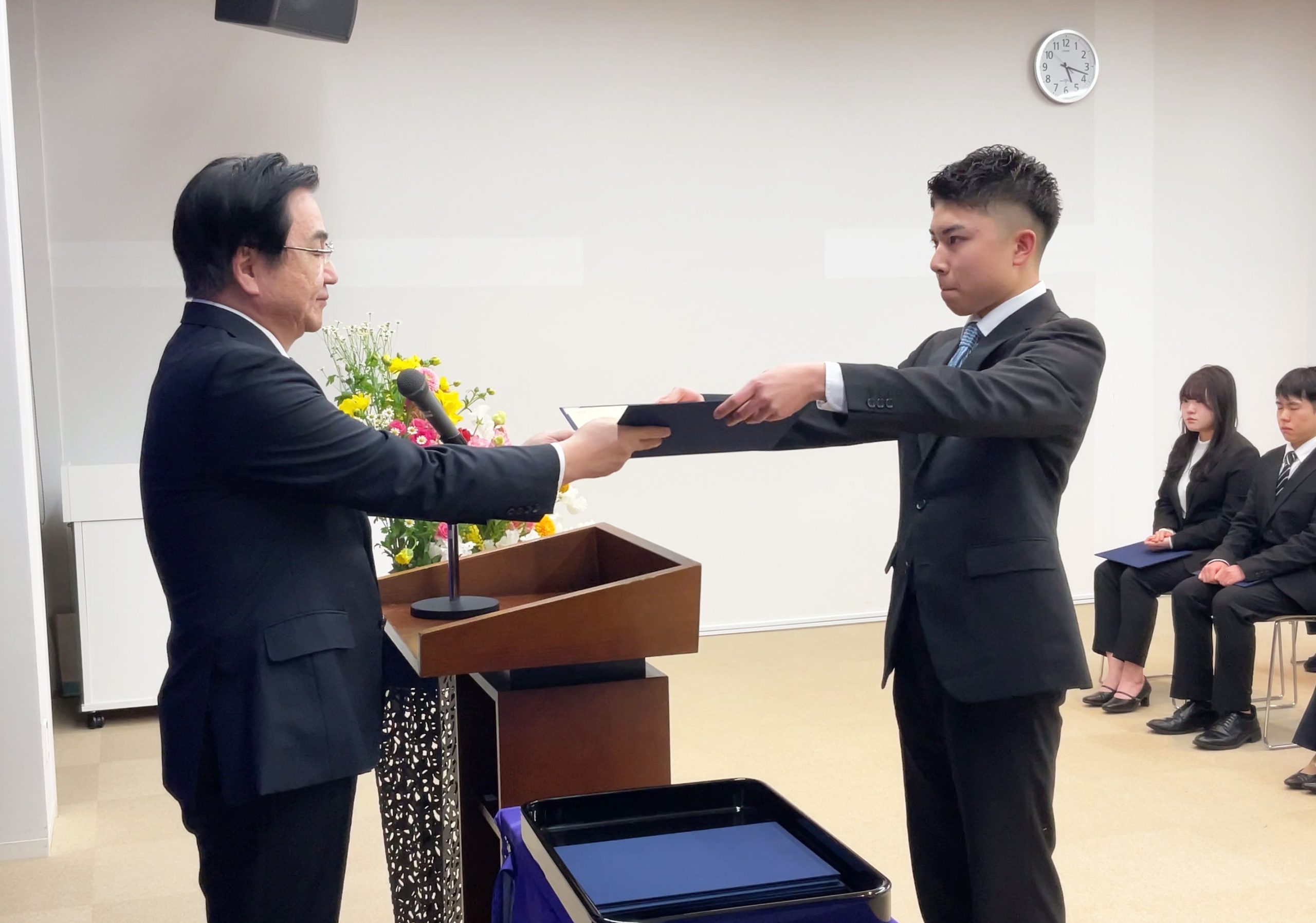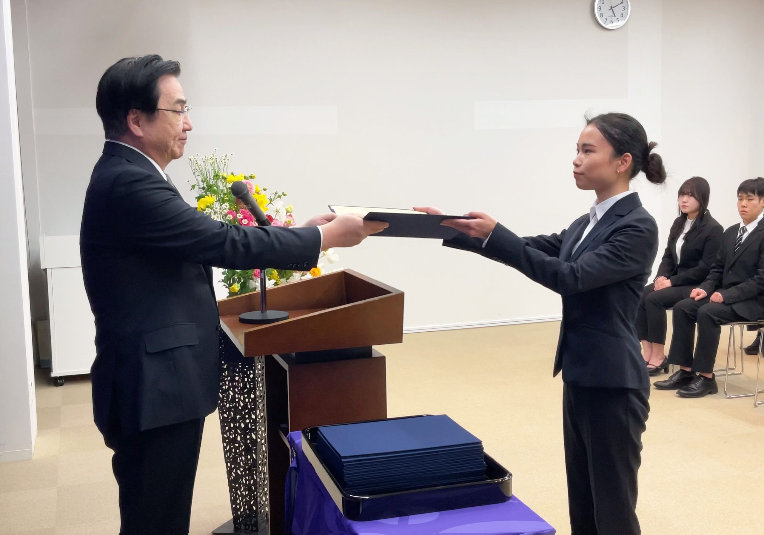 式典では、冨永総長より認定者に対するお祝いと激励の言葉が送られた後、参加した受賞者1人1人に対して認定証が授与されました。